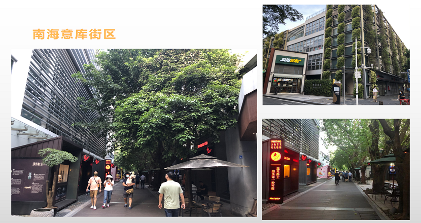 陳超榮同志一行高度贊賞口袋公園及特色街區項目,一致表示,口袋公園項目選址靈活、占地面積小,可以見縫插針地離散分布于城市各個角落,再加上它們主題突出、特色鮮明,不僅能夠滿足城市居民對公園休閑功能的需求,增加城市居民生活樂趣,也能改善城市人居環境、打造城市名片。而作為深圳著名創意文化產業示范園區與綠色低碳建筑的典范,南海意庫街區匯聚眾多設計、創意、文化企業總部,擁有數十家主題餐廳、創意商品鋪子、設計師品牌服裝、特色咖啡與酒吧,形成了文化創意有機產業鏈,已不僅只是一個成功的文化創意產業園區,同時也是具有豐富文化底蘊、廣泛影響力和強大吸引力的商業旅游目的地,可以給消費者帶來耳目一新的文化藝術體驗和優質舒適的文旅消費體驗。