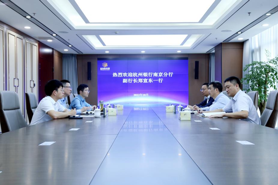 10月25日,杭州銀行南京分行副行長鄭宣東一行來到鹽高新集團考察交流。集團黨委副書記、總經理孫瑞紅,總經理助理、融資部部長郭靖熱情接待鄭宣東一行。