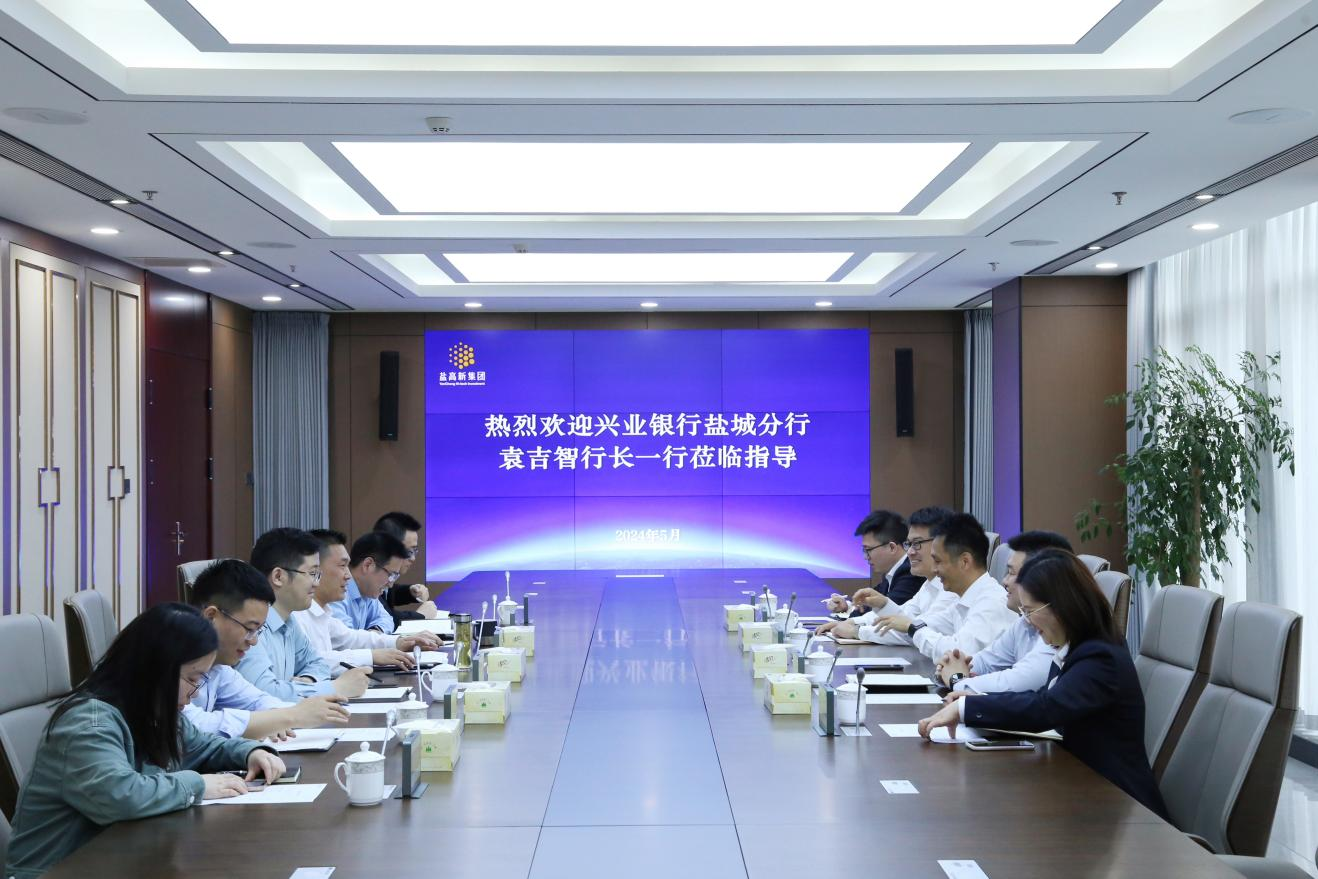 5月30日,興業銀行鹽城分行行長袁吉智一行親臨鹽高新集團考察交流。鹽高新集團黨委書記、董事長徐為,黨委副書記、總經理孫瑞紅,熱情接待了袁吉智一行,雙方就深化合作進行了交流。