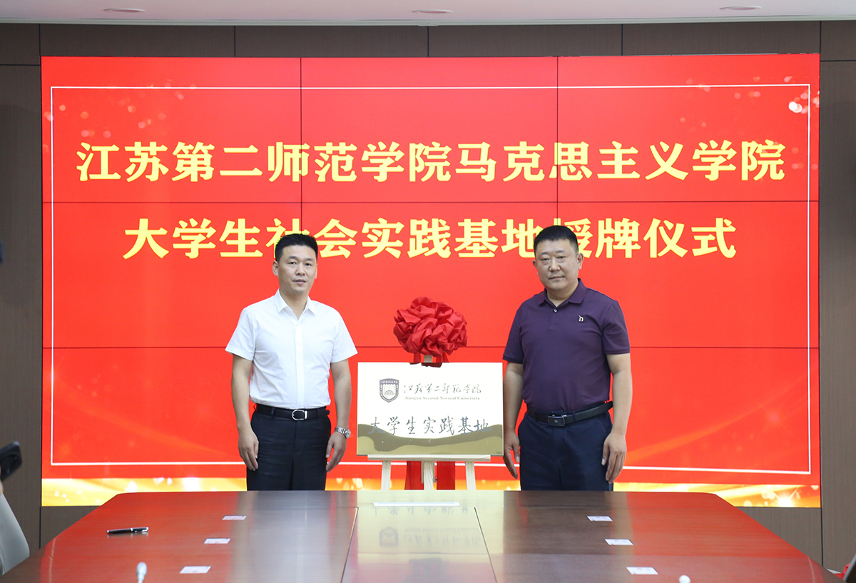 會上,校企雙方簽訂了合作共建協議,徐為和李雙江共同為江蘇第二師范學院“大學生實踐基地”揭牌。