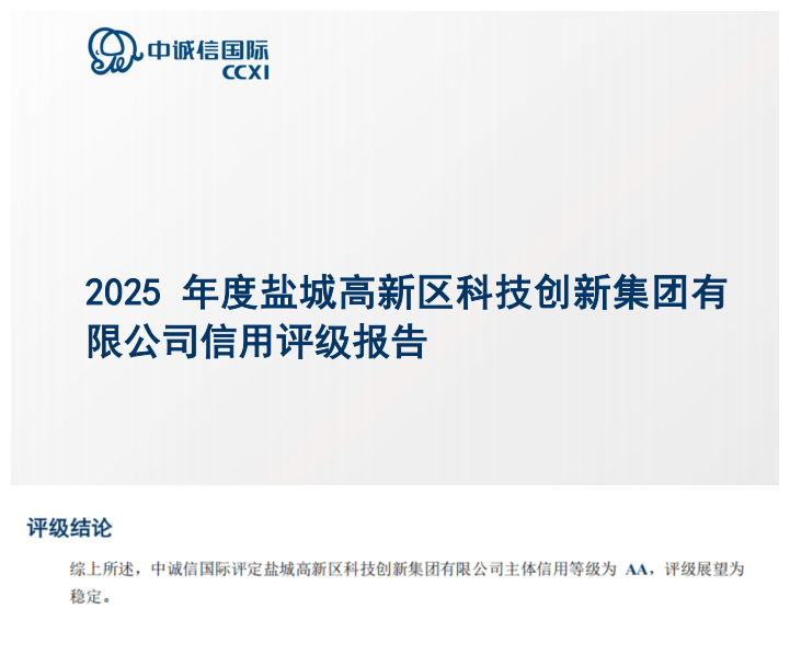 近日,中誠(chéng)信國(guó)際信用評(píng)級(jí)公司發(fā)布2025企業(yè)信用評(píng)級(jí)結(jié)果,正式授予高新產(chǎn)控集團(tuán)旗下全資子集團(tuán)科創(chuàng)集團(tuán)AA主體信用評(píng)級(jí)。