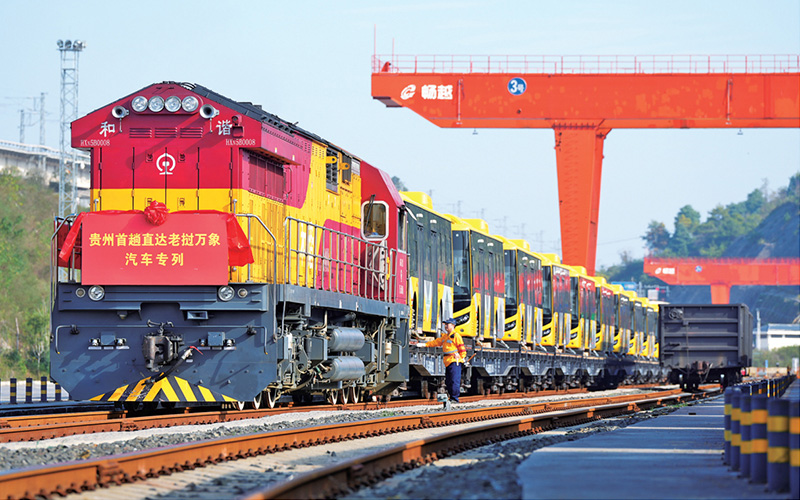 圖為2024年10月28日,裝載“貴州造”新能源客車的出口專列停靠在貴陽(yáng)國(guó)際陸港都拉營(yíng)站。 新華社記者 劉續(xù)/攝